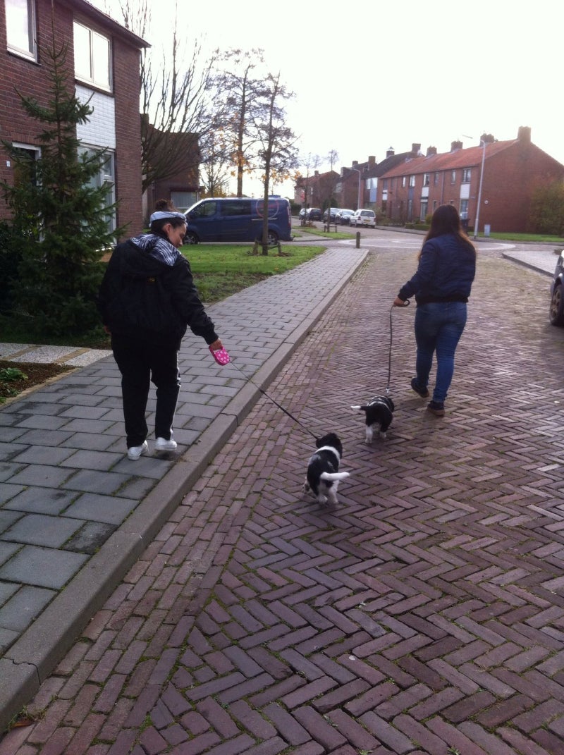 Wandelen met drie pups is best een uitdaging
